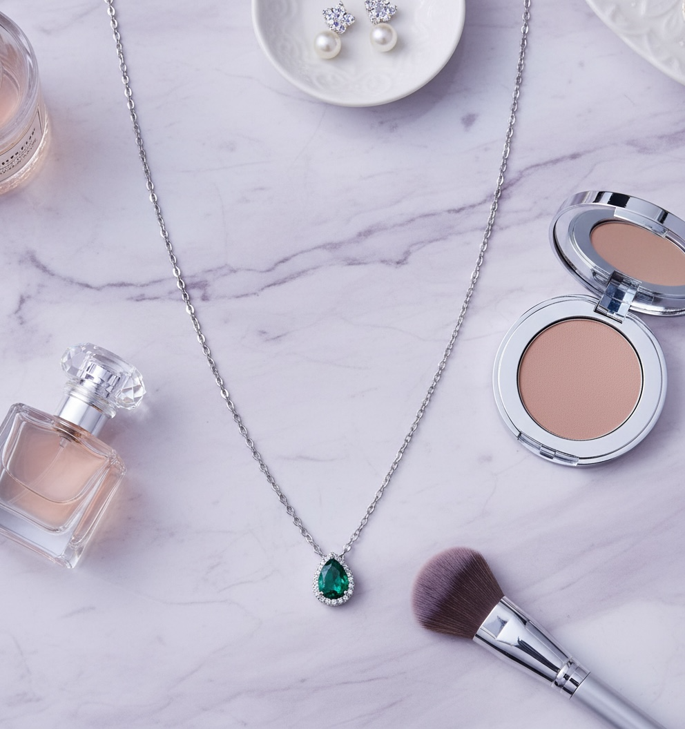 This elegant Green Teardrop Necklace adds a touch of deep, refined colour to any jewellery collection.